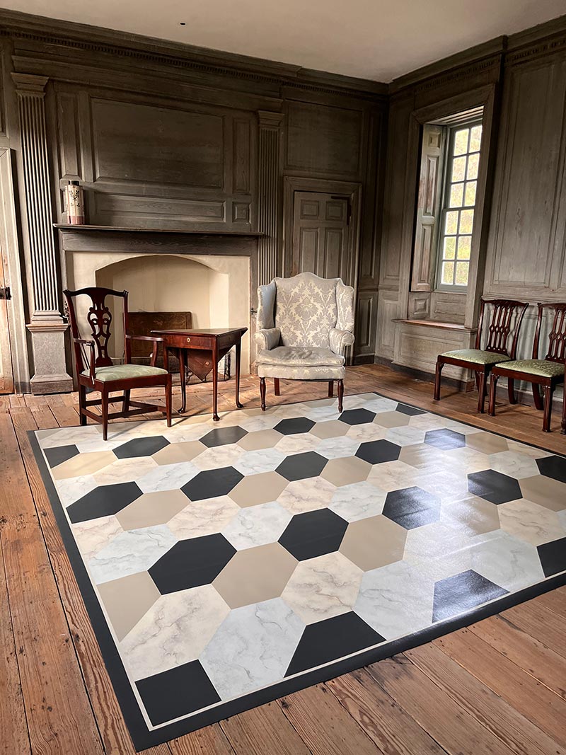 Block Printed Floorcloth 4-White and Reversed Blocks