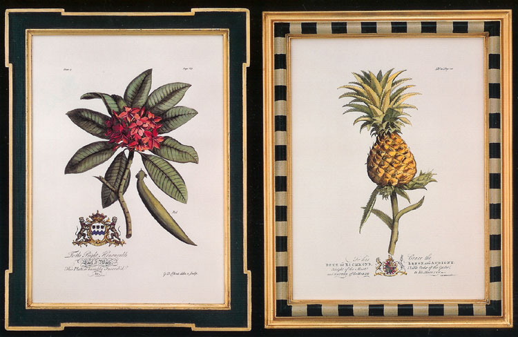 Unique features in our frames include double stepped-out corners and ornamental Kent corners. These beautiful designs are based on those of printmaker William Hogarth and William Kent, an English architect. Each of our frames is hand made, hand assembled and and finished using traditional methods, including gusso, bole, water and oil gilding and hand-rubbed finishes. We can custom match just about any color or finish. Our commitment to accuracy lets us create museum-quality pieces that grace the rooms of some of the finest 18th Century dwellings in the country. You can find examples of our works in the halls and rooms of: